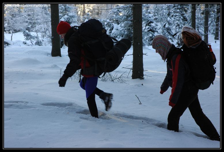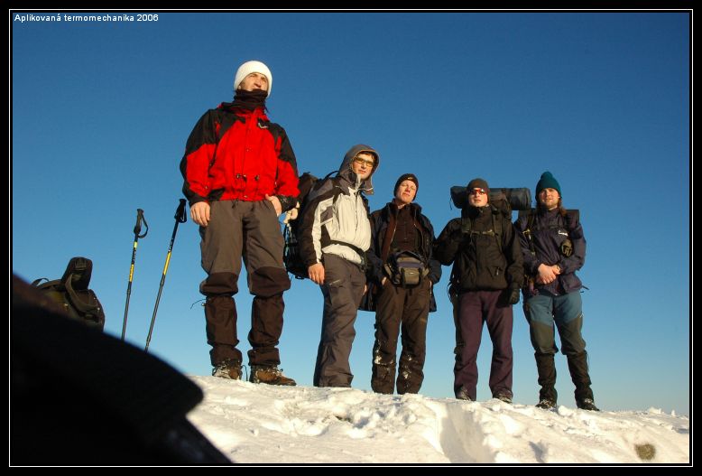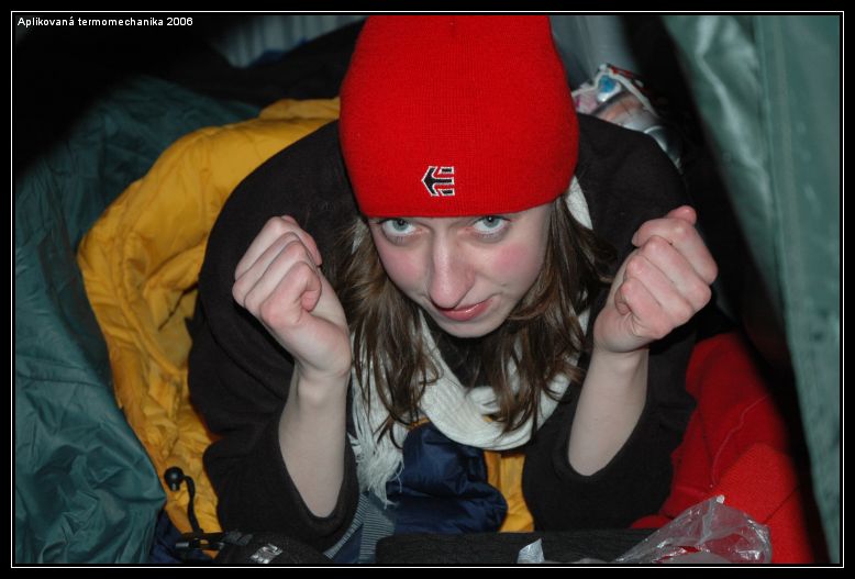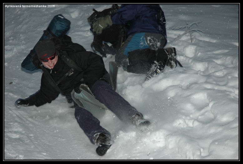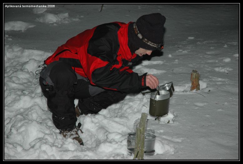 Aplikovanou (termo)mechaniku doporučuji před zkouškovým obdobím každému, protože si u ni člověk neuvěřitelně odpočine. Při té zimě a fyzickém napětí si ani nevzpomenete na školu protože myslíte jen na to, aby jste byli v noci v teple a měli co pít a jíst. Musím také napsat, že na mně, jako na nejslabší článek řetězů, všichni počkali nebo mi jakkoli pomohli, takže fyzická (ne)zdatnost není problém :-).