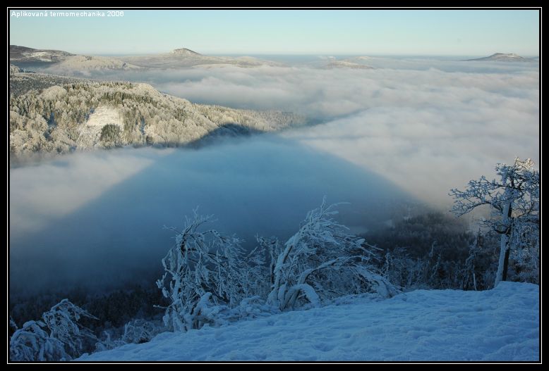 Letošní (termo)mechanika se konala v Lužických horách za krásného počasí od pátku 13.ledna do neděle 15.ledna. Uražené vzdálenosti jsou s minulým ročníkem nesouměřitelné, protože letos jsme podle mne chodili jen do kopce :-) a bylo mnohem více sněhu. Zásadu "Tělo musíme překvapit" jsme myslím dodrželi.